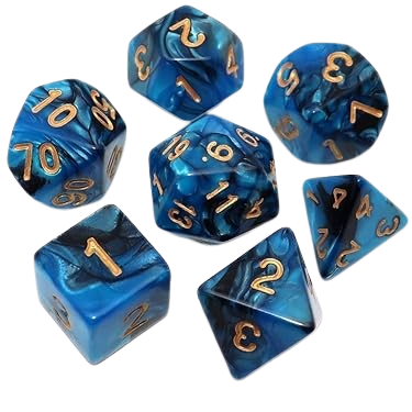 - Complete 7-delige polydice set (d4, d6, d8, d10, d%, d12, d20)